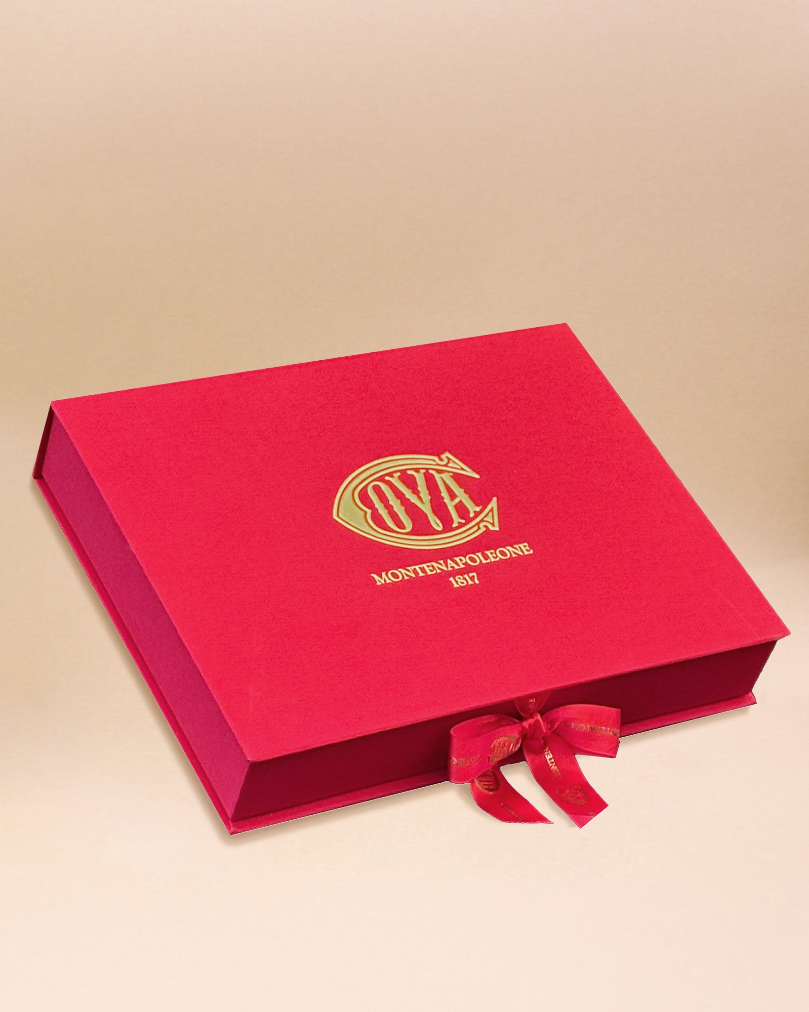 La nostra scatola di seta è una confezione preziosa per ambienti raffinati, dalle dimensioni generose, che alterna praline, praline con logo Cova e classici cioccolatini. La scatola stessa è raffinata, elegante, nella sua semplicità che evoca altri tempi.