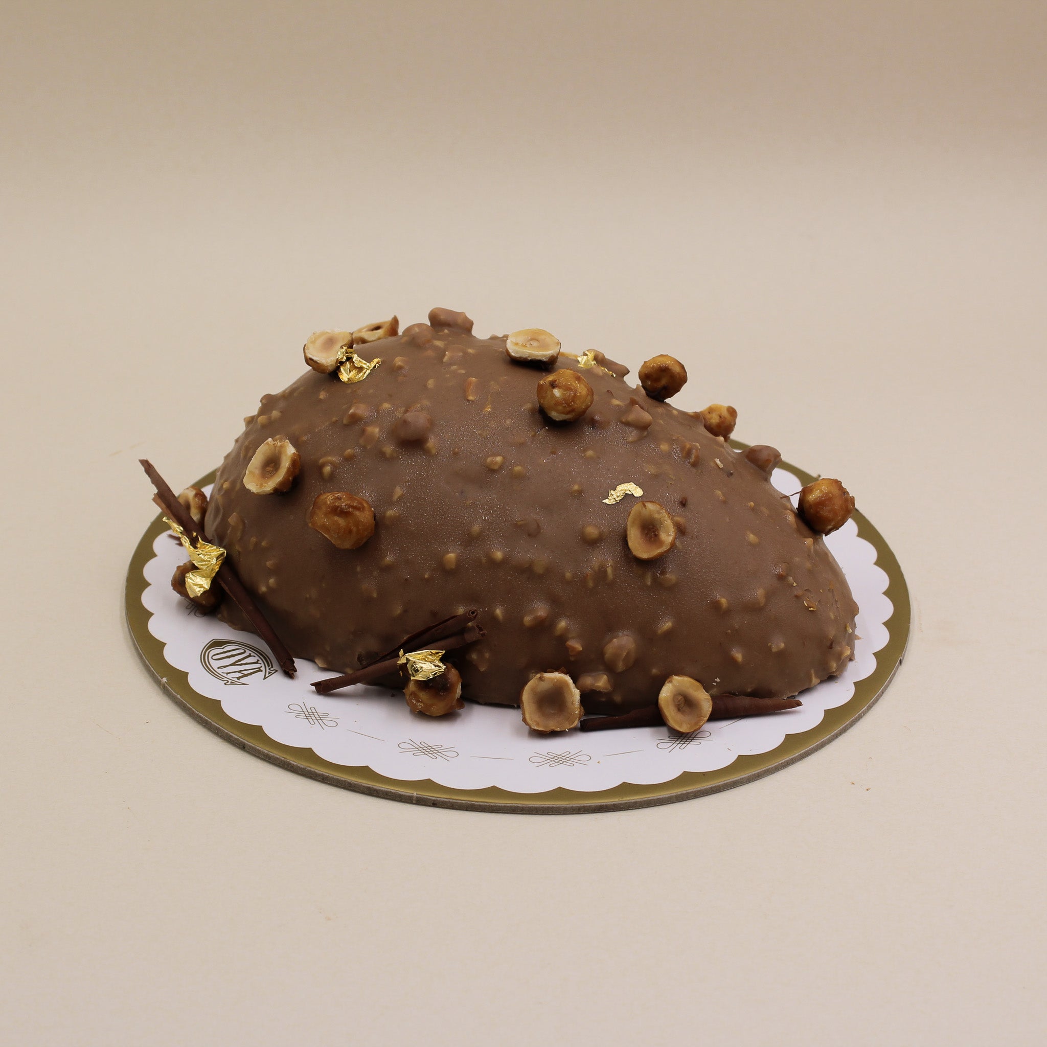 Una sottile copertura croccante al gianduia e nocciole, farcitura morbida alla nocciola e caramello salato. 4/5 pax.