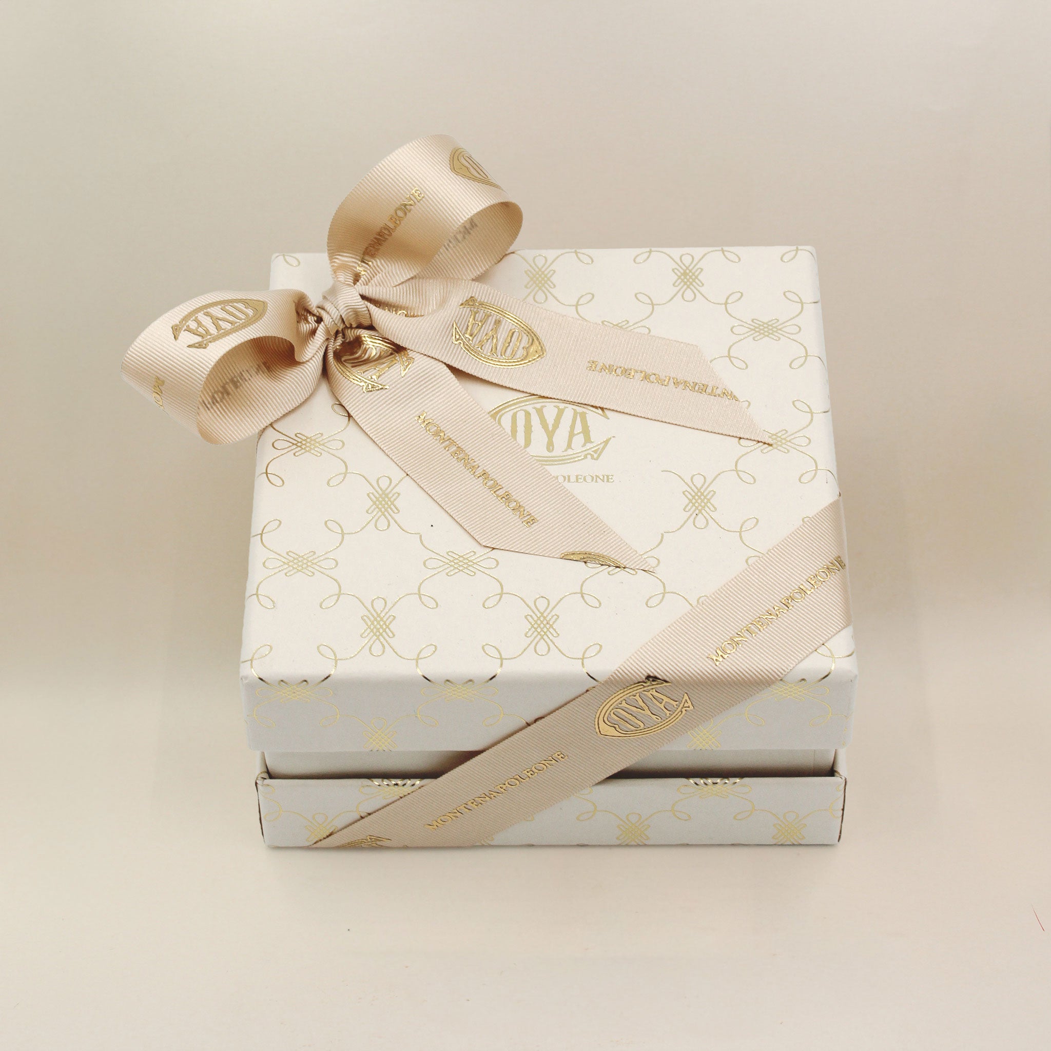 In a sand-toned gift box: a solution for a precious present suitable for those with a sweet tooth, in this case with 20 pieces (230 grams).